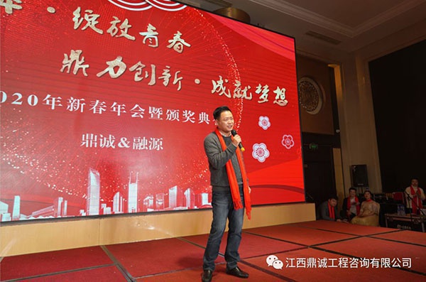 南昌大学建筑学院副教授、爱游戏ayx官方登录入口董事长、注册造价工程师、注册监理工程师卓平山先生开场便引用《中庸》的“人一能之,已百之;人十能之,已千之。”对鼎诚在周晓总经理带领下的班子成员和过去一年所取得的成绩表示满意;讲话中指出了当前公司运营中存在的不足;还高屋建瓴地指出了鼎诚2020年奋斗目标和未来的规划!强调了在未来的日子里我们依旧要节勤节勉、笃实践履,鼓励公司全员“人生在勤,不索何获”, 相信在座的同仁们一定会不辱使命,同舟共济,践行成就公司发展、腾飞的梦想!