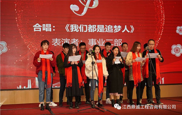 还有演绎琼瑶爱情的《情深深雨蒙蒙》;琴声悠扬的吉他弹奏《成都》;创意独特的配音节目《美人鱼》;激情励志的《奔跑》;新生力量充满活力的集体舞;富有情感的《南山南》;展现军人情怀的《军中绿花》;真情流露的《朋友》;充满希望的《明天会更好》。精彩节目频频上演,异彩纷呈,欢声笑语的年会让我们感受到鼎诚人身上所焕发的阳光与自信、努力与拼搏!不负韶华,绽放青春!
